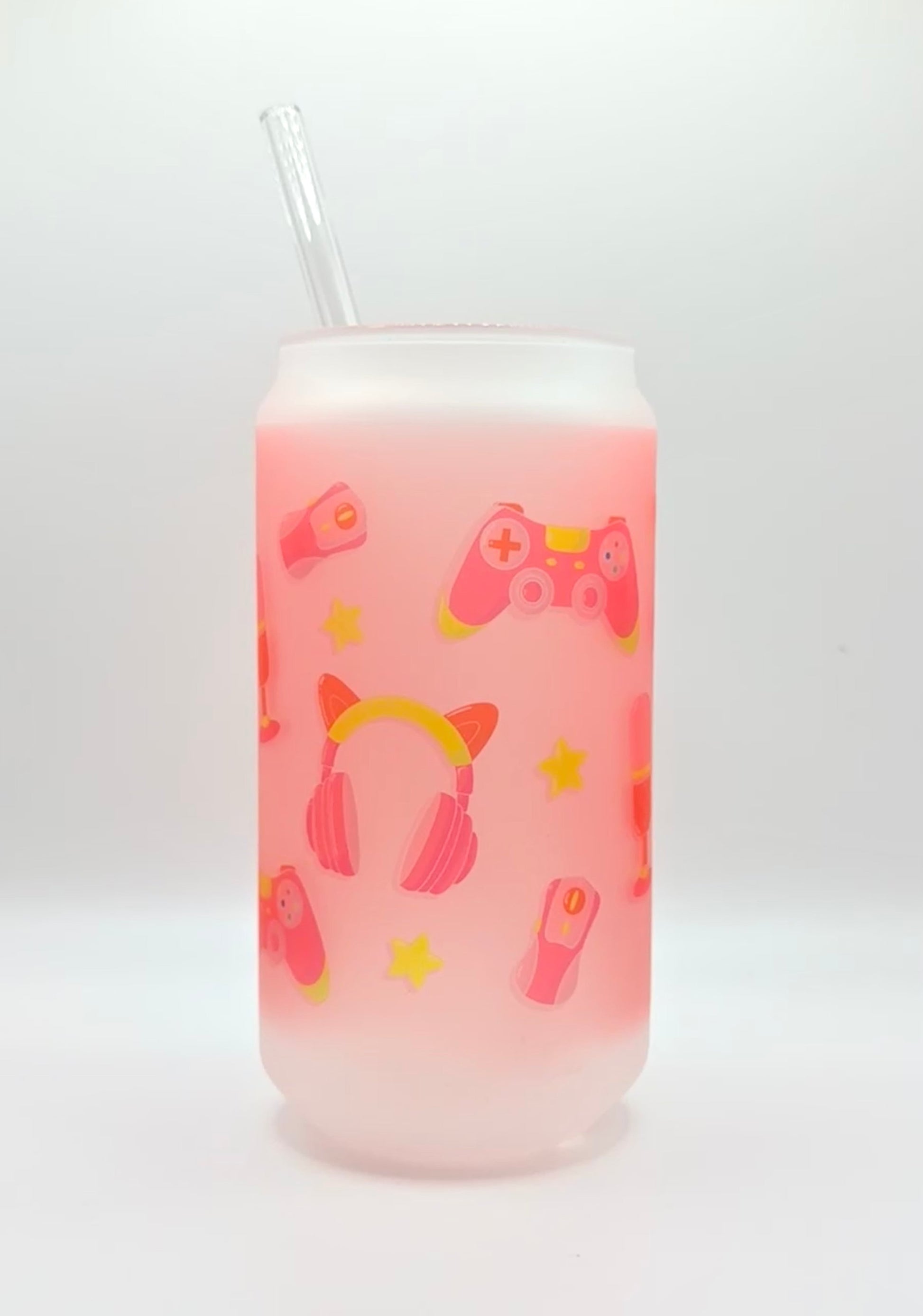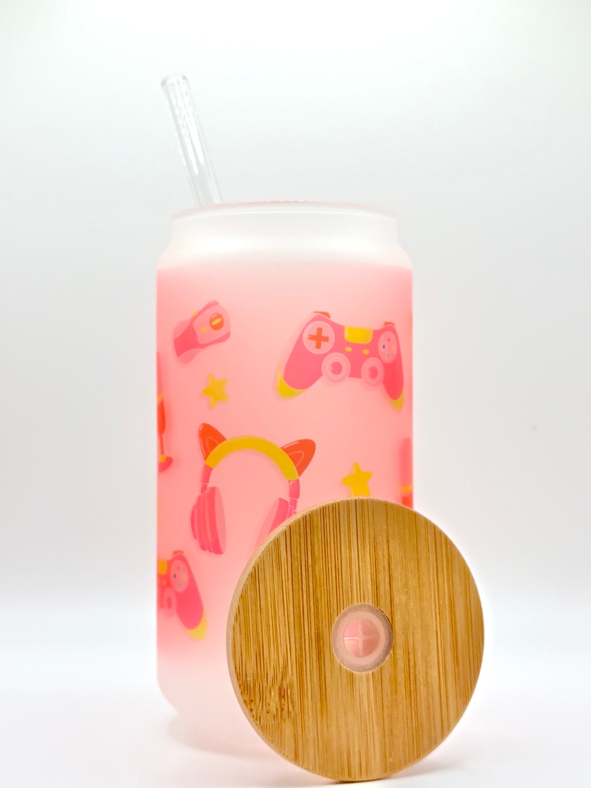 Each glass cup has a cute design, drawn and heat pressed by me! Includes a bamboo lid and glass straw. Can be used for iced coffee, iced tea, juice, milk, or any other drinks!